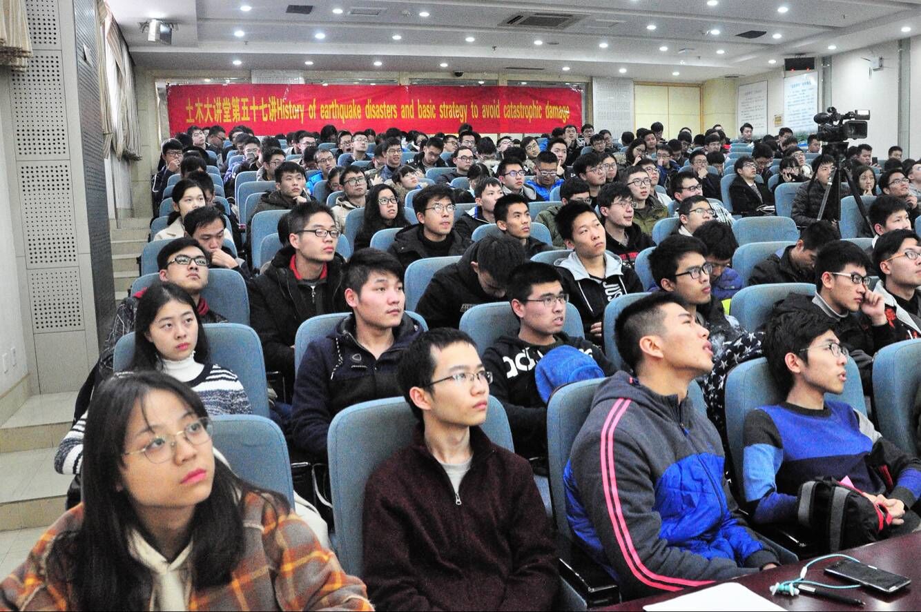 2017年12月4日下午,由土木与交通学院主办,学院本科生科协承办的土木大讲堂第五十七讲之“History of earthquake disasters and basic strategy to avoid catastrophic damage”在河海大学校本部闻天馆113室成功举办。本次活动为学院与中国岩石力学与工程学会环境岩土工程分会共建土木大讲堂的首次合作,第一次邀请外籍专家——日本东京大学东畑郁生(Ikuo Towhata)教授全程用英文为本科生做讲座。中国岩石力学与工程学会环境岩土工程分会秘书长陈育民教授主持了本次讲座,中国岩石力学与工程分会副会长徐文立女士应邀出席了本次讲座,2015级辅导员王璐老师、2014和2015级部分本科生聆听了本次讲座。